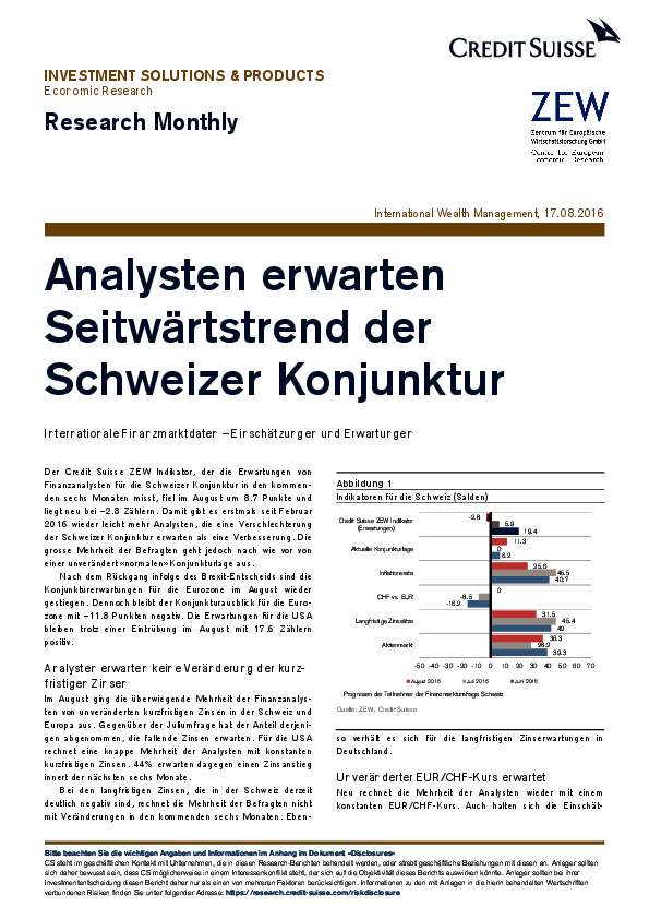 Finanzmarktreport Schweiz // 2016- Internationale Finanzmarktdaten – Einschätzungen und Erwartungen