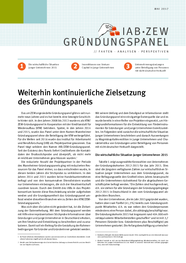 • Die wirtschaftliche Situation junger Unternehmen 2015
