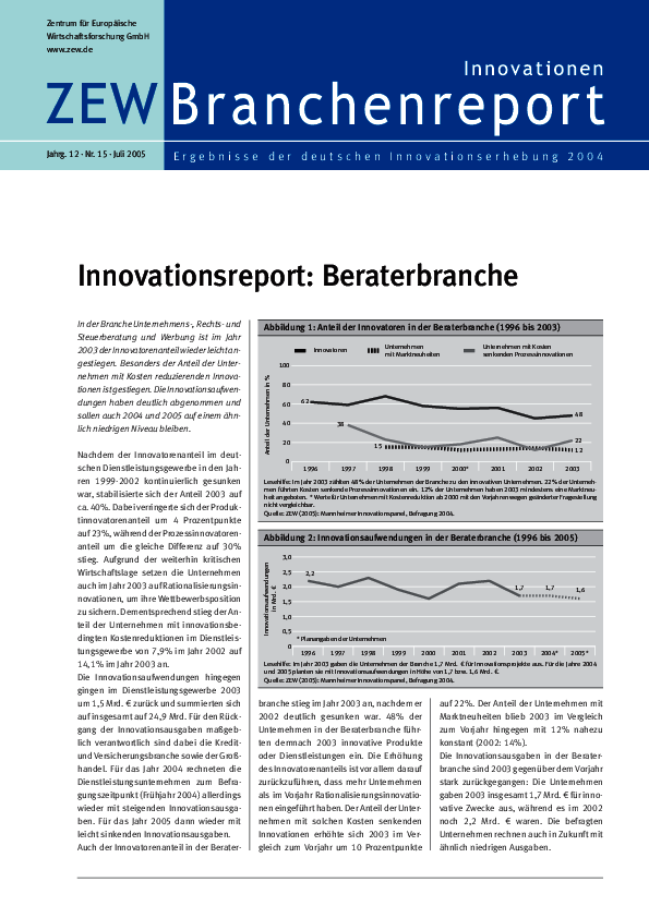 In der Branche Unternehmens-, Rechts- und Steuerberatung und Werbung ist im Jahr 2003 der Innovatorenanteil wieder leicht angestiegen. Besonders der Anteil der Unternehmen mit…