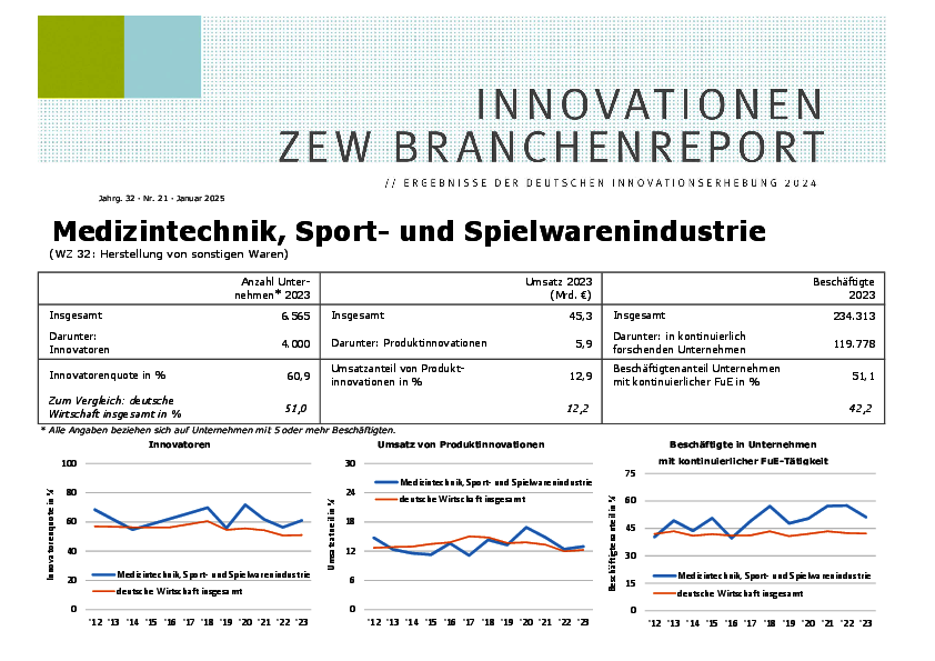 Der Branchenreport Innovation für die Branche Medizintechnik, Sport- und Spielwarenindustrie stellt die Innovationsleistung der Branche im Jahr 2023 dar. Der Anteil der…