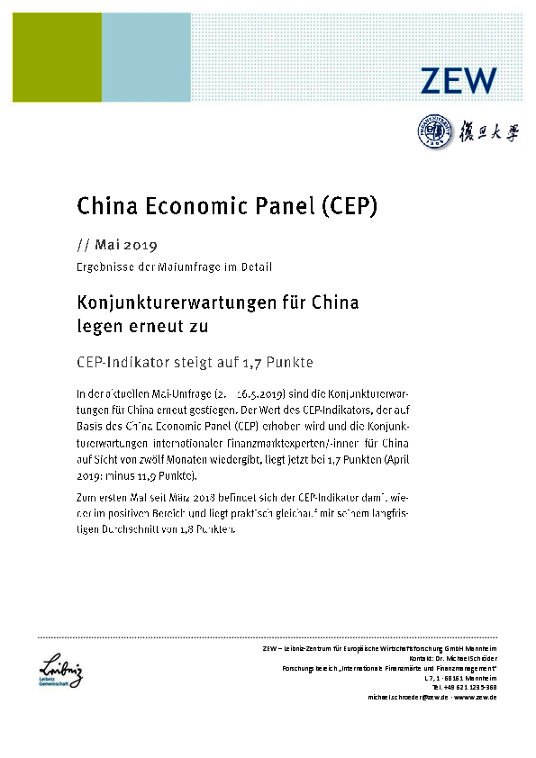 - Konjunkturerwartungen für China legen erneut zu: CEP-Indikator steigt auf 1,7 Punkte