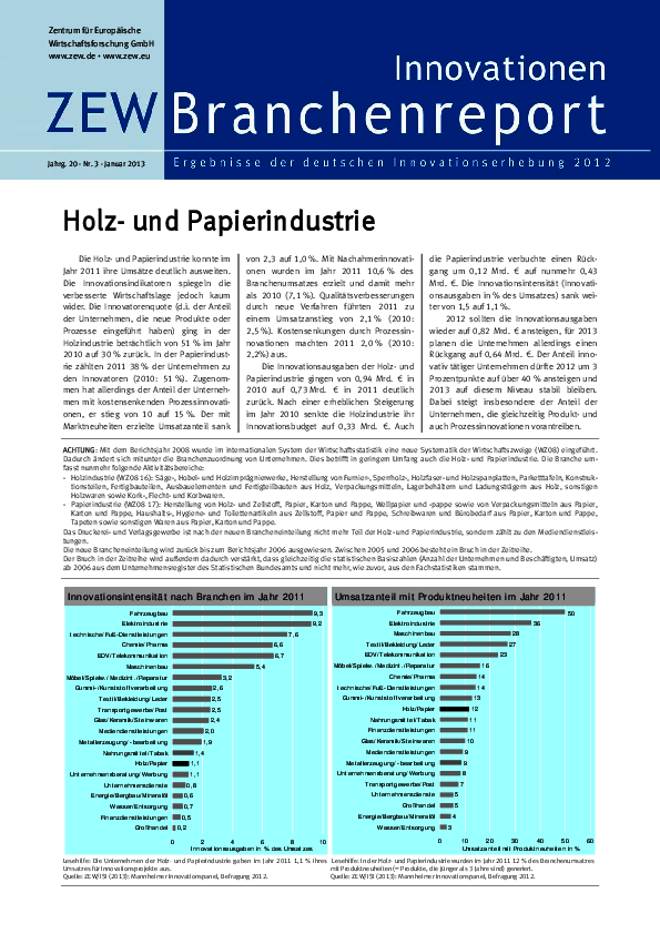 Die Holz- und Papierindustrie konnte im Jahr 2011 ihre Umsätze deutlich ausweiten. Die Innovationsindikatoren spiegeln die verbesserte Wirtschaftslage jedoch kaum wider. Die…