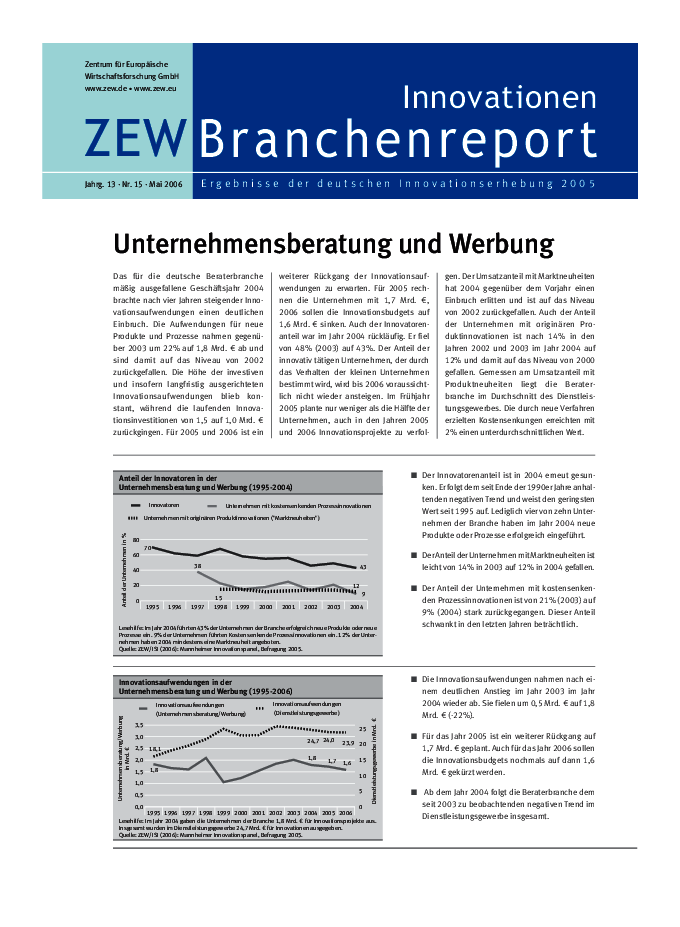 Das für die deutsche Beraterbranche mäßig ausgefallene Geschäftsjahr 2004 brachte nach vier Jahren steigender Innovationsaufwendungen einen deutlichen Einbruch. Die Aufwendungen für…