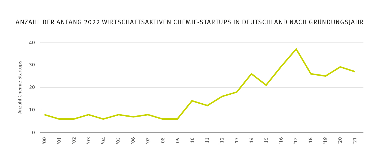 Pressemitteilungen // 31.10.2022Höhe der Investitionskosten von Chemie-Start-ups unterscheiden. Um Prototypen oder Laboranwendungen auch in großem Umfang produzieren zu können, brauchen Chemie-Start-ups oft kostspielige technische Anlagen [...] dritte Chemie-Start-up sind die Genehmigungsprozesse ein Hemmnis. Vor allem lange dauernde Verfahren und der hohe Verwaltungsaufwand für Anträge und Dokumentationen belasten die Chemie-Start-ups.“ [...] Chemie-Start-ups können wichtige Beiträge zur ökologischen Transformation der Wirtschaft leisten. Sie entwickeln Prozesse, um die Produktion der Industrie nachhaltiger zu gestalten und finden klimafreundliche