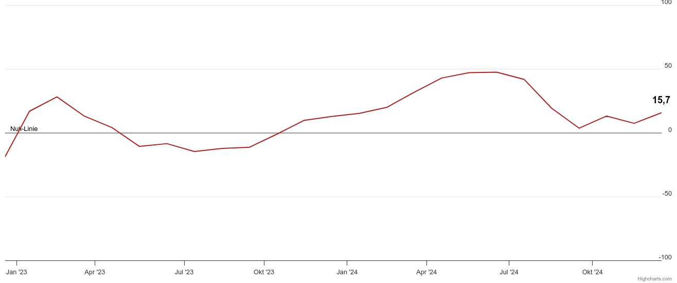Pressemitteilungen // 12.11.2024Erwartungen sinken in der aktuellen Umfrage, wobei dies insbesondere auf den Ausgang der US-Präsidentschaftswahl zurückzuführen sein dürfte. Dafür spricht die Tatsache, dass die Konjunkturerwartungen für [...] chere Stimmen zum wirtschaftlichen Ausblick für Deutschland durch die Aussicht auf vorgezogene Neuwahlen. Insgesamt ist die derzeitige Entwicklung der Konjunkturerwartungen sehr dynamisch“, kommentiert