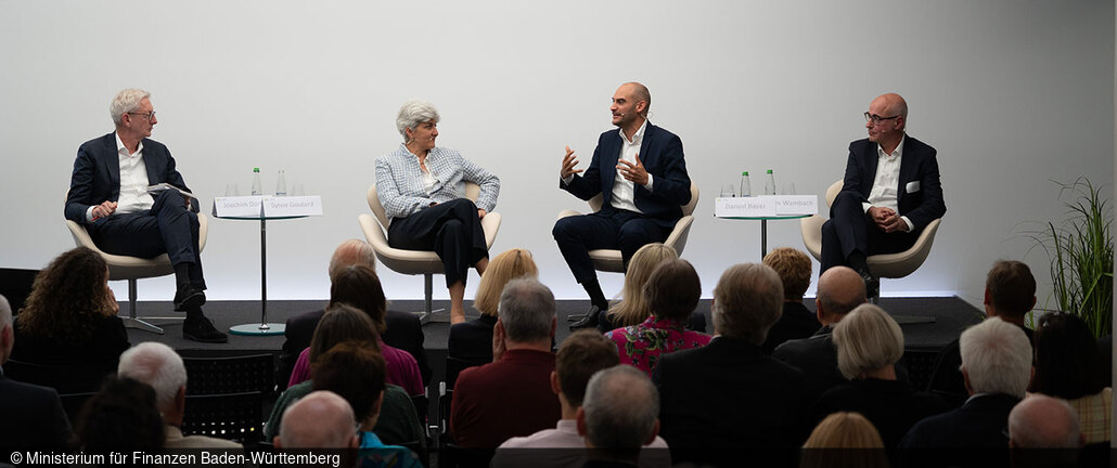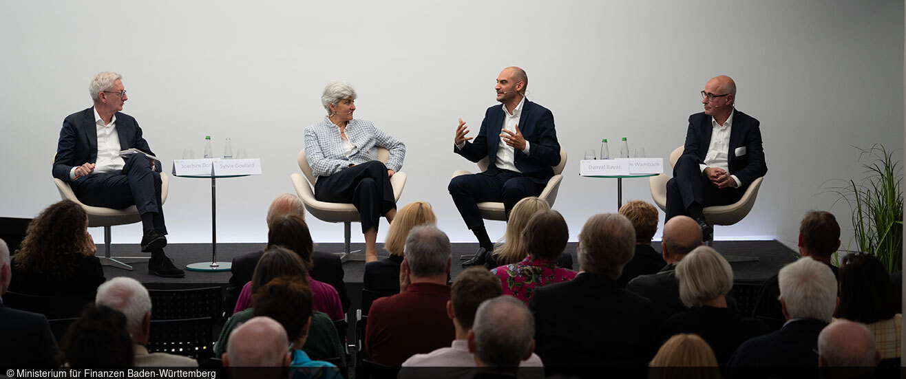 Podiumsdiskussion: Nachhaltige Haushaltspolitik – Budgets mit Wirkung, Investitionen in die Zukunft mit Danyal Bayaz, Sylvie Goulard und Achim Wambach (11.06.2024)