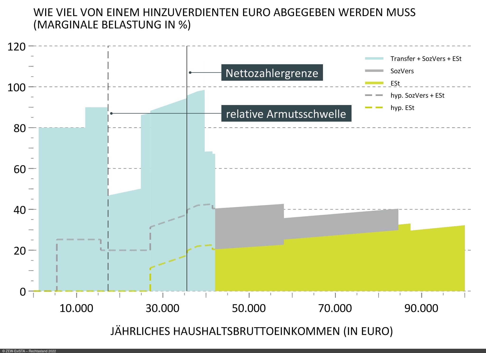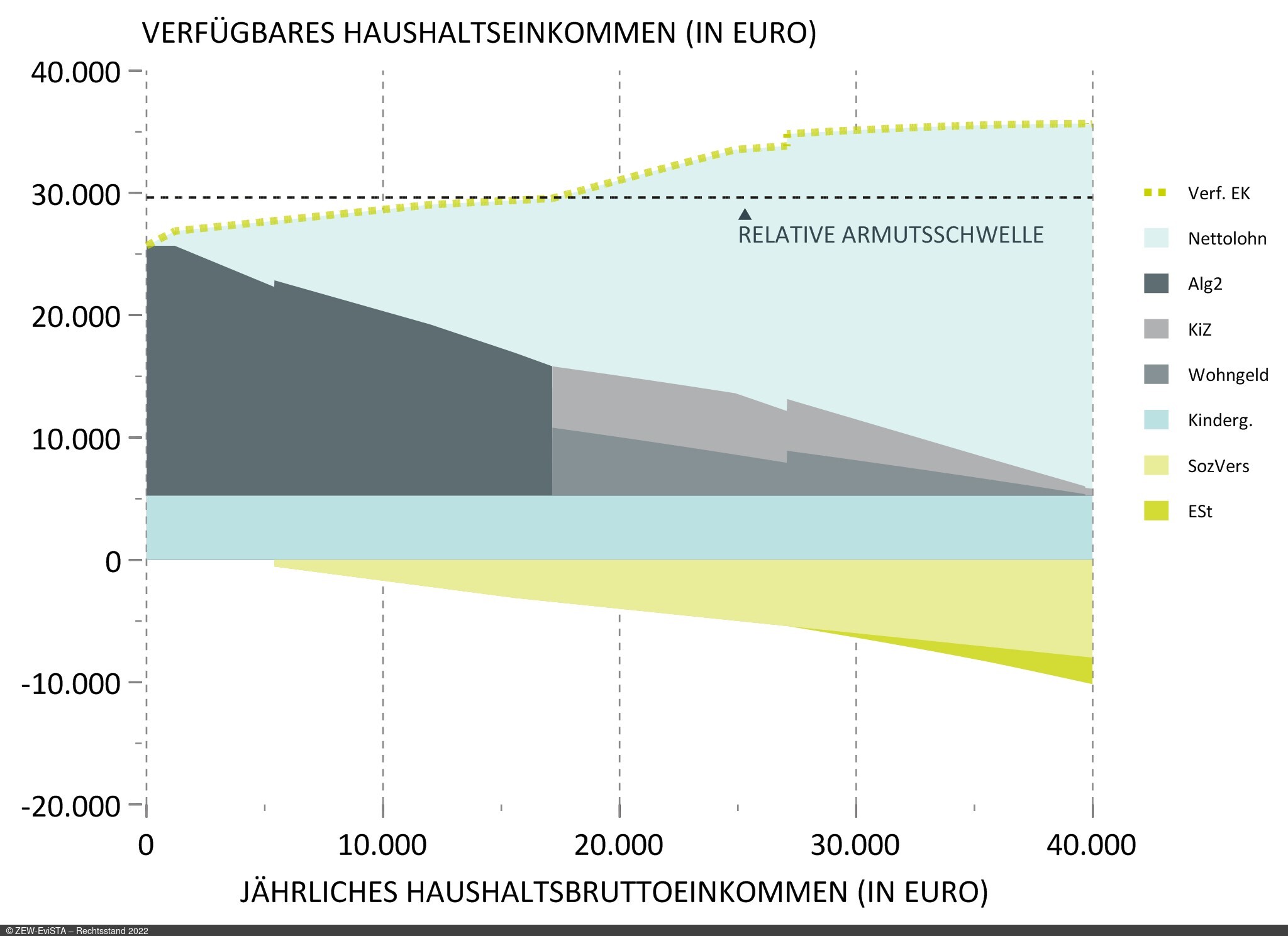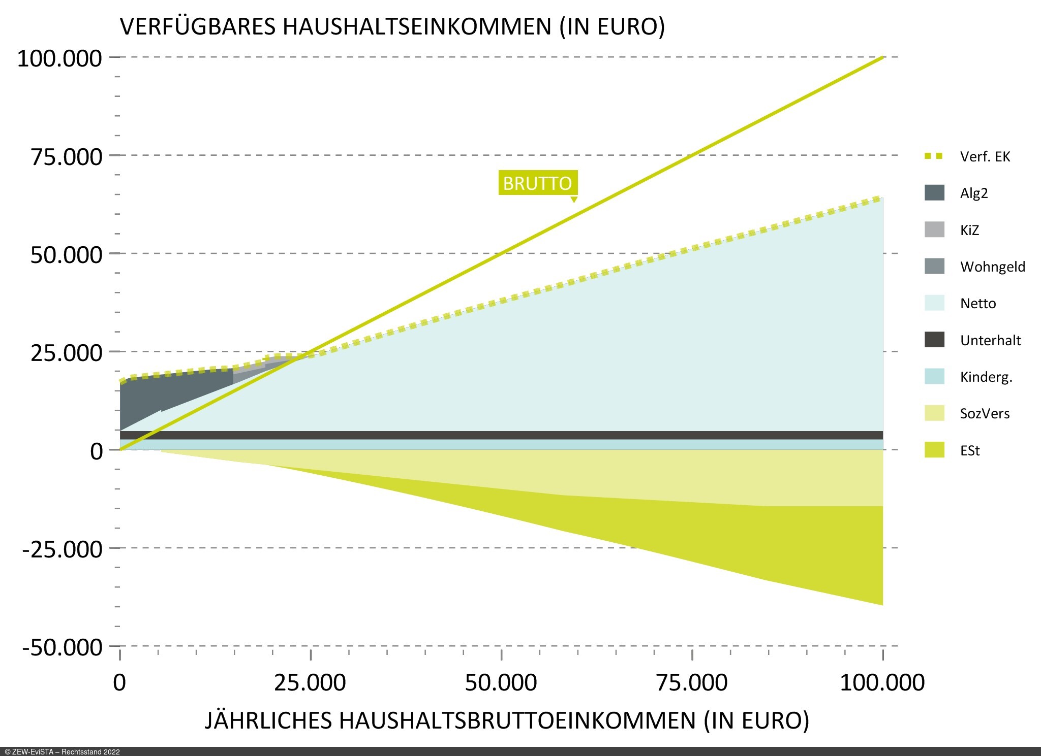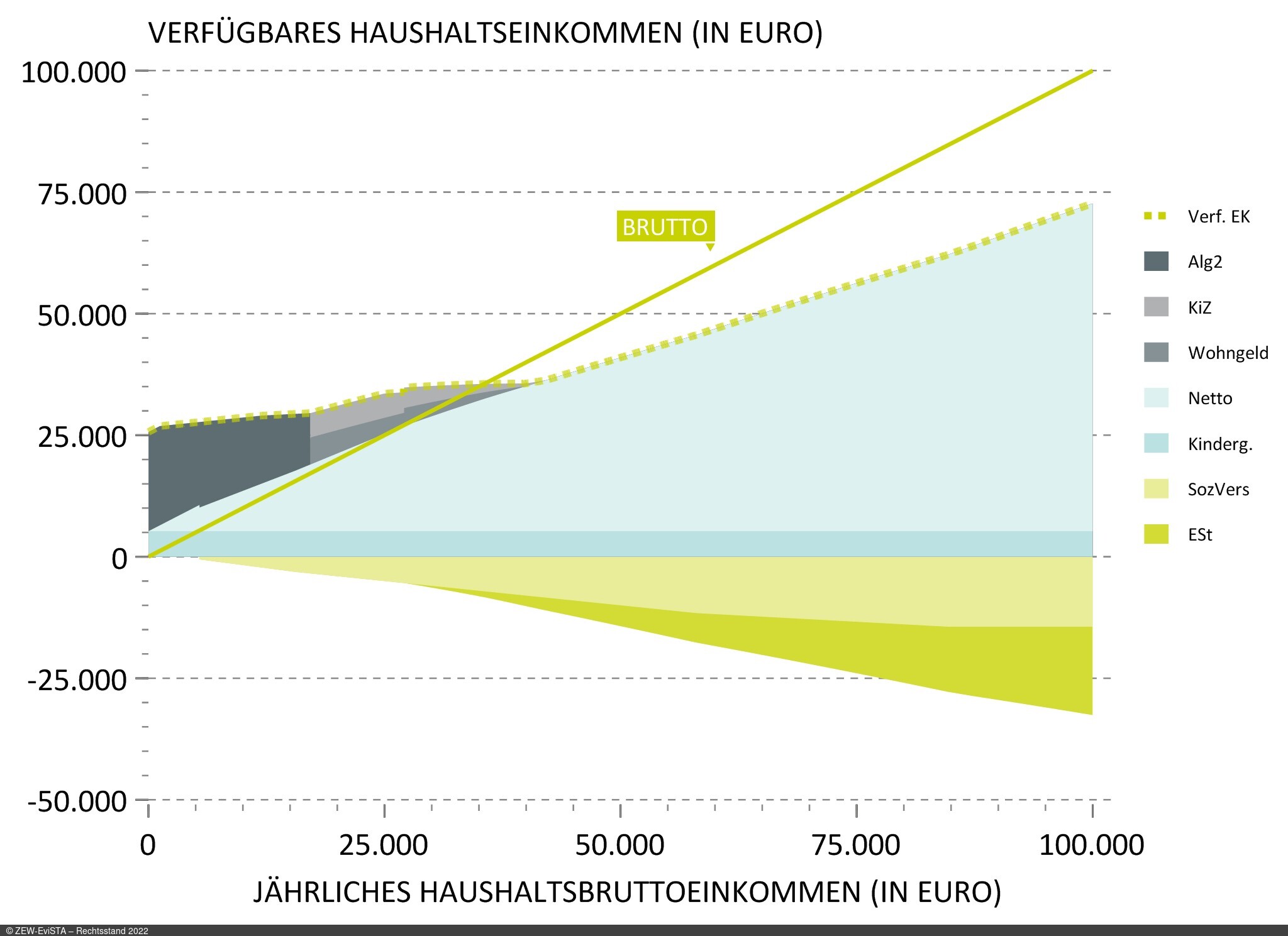 Das ZEW verfügt über ein etabliertes Mikrosimulationsmodell (ZEW-EviSTA), das bereits in zahlreichen Politikberatungsprojekten eingesetzt wurde. ZEW-EviSTA steht als Akronym für Evaluationsmodell für integrierte Steuer- und Transferpolitikanalysen (EviSTA) des ZEW – Leibniz-Zentrum für Europäische Wirtschaftsforschung GmbH Mannheim. Modelliert werden die Einkommensteuer, die Sozialversicherungsbeiträge und das Kindergeld. Im Transferbereich erfasst das Modell die zentralen Regelungen aus den Rechtskreisen des SGB II und SGB XII sowie den Kinderzuschlag und das Wohngeld. Das ZEW-EviSTA erlaubt es, die Auswirkungen von Veränderungen im Steuer- und Transfersystem umfassend und differenziert abzuschätzen. Als Zielgrößen werden zum einen die Höhe, Veränderung und Verteilung der Löhne und verfügbaren Einkommen (einschließlich der einzelnen Komponenten, also etwa des Wohngeldanspruchs) der privaten Haushalte in Deutschland ausgewiesen. Zum anderen werden – spiegelbildlich zur Haushaltsperspektive – die Auswirkungen auf die öffentlichen Haushalte abgeschätzt. Dazu zählen das Aufkommen aus Steuern und Sozialversicherungsbeiträgen sowie die Kosten staatlicher Transferleistungen.